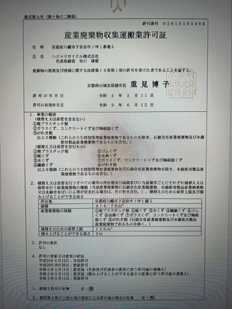 産業廃棄物収集運搬積み替え保管施設(京都府認可)あり