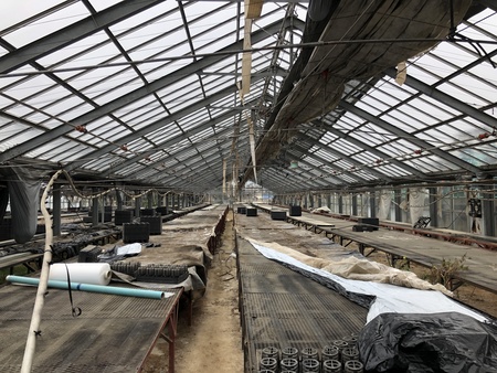 ガラス温室の本体及び基礎部分の解体工事です。