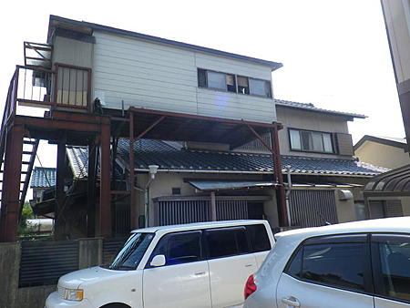 この建物の1階は倉庫(車庫)状の空間になっていて、柱等も少ないので、2階を解体するときに重量をかけ過ぎて1階がつぶれないよう、注意しながら解体しました。
