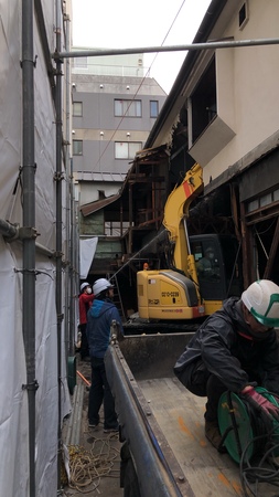 築70年の木造長屋2階の解体工事。近隣と接近している為、ご迷惑をお掛けしない様、細心の注意を払い解体工事を行う。アスベスト検体検査、リサイクル法申請、道路使用許可証等、コンプライアンスを守り、マニュフェスト管理の徹底を図り予定通り作業完了。