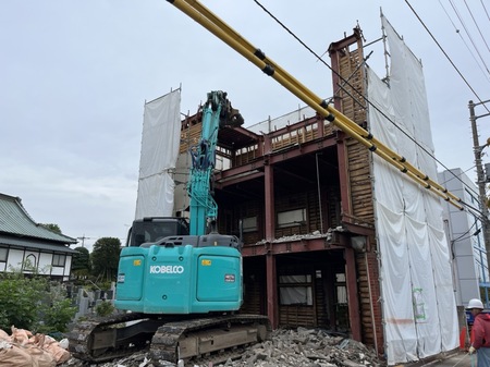 スペースが無い狭小地の鉄骨増3階建て事務所の解体工事を担当させていただきました。非常に難易度の高い工事でしたが、希望通りの工程と完全無事故無災害、ノークレームを達成し、何事も無く工事を完了させることができました。