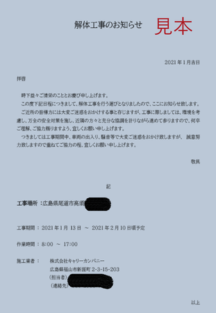 - 工事前の近隣挨拶