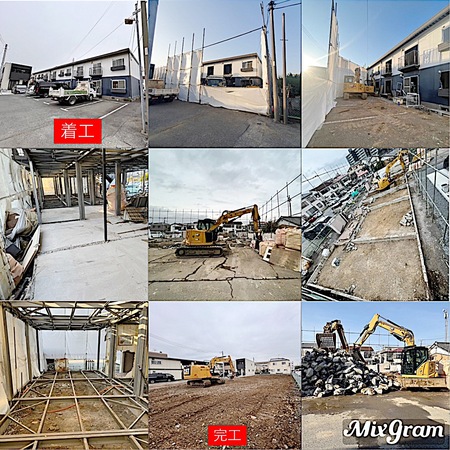 画像が一枚しか載せられなくてコラージュにして見づらいですが着工から完工までの写真です。